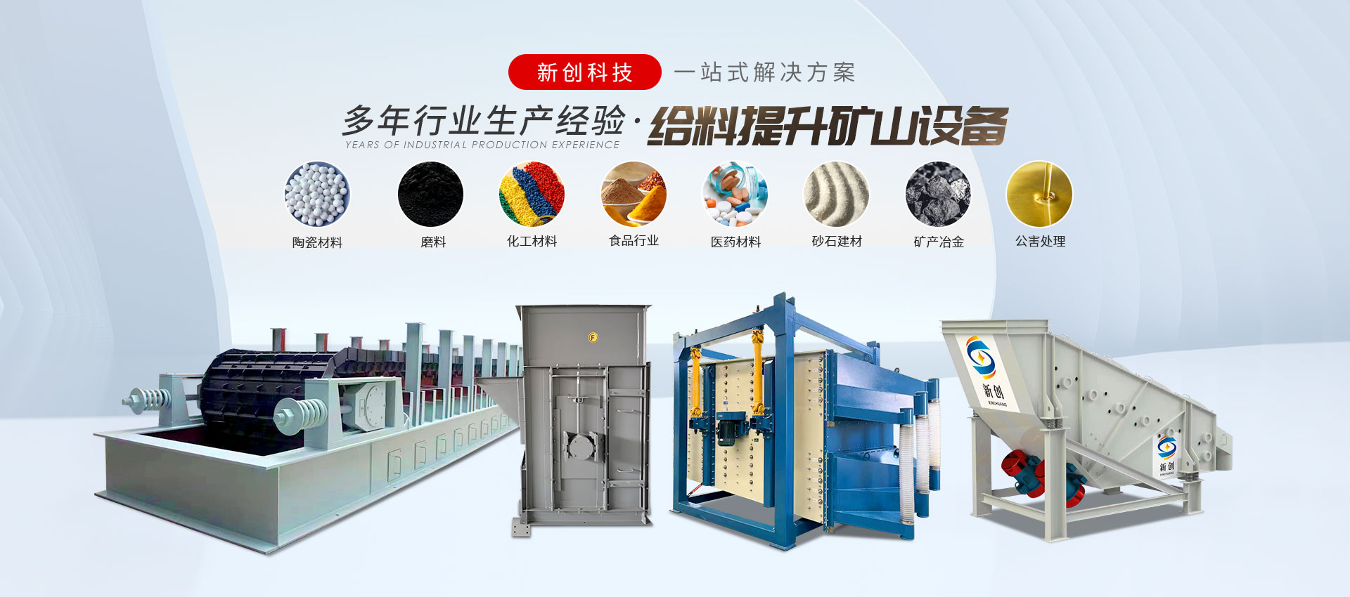 邯鄲市峰峰礦區(qū)新創(chuàng)科技有限公司是振動設(shè)備、給料設(shè)備、振動篩分設(shè)備、輸送設(shè)備、提升設(shè)備、除塵設(shè)備等制造廠,玻璃原料輔機(jī)生產(chǎn)廠。